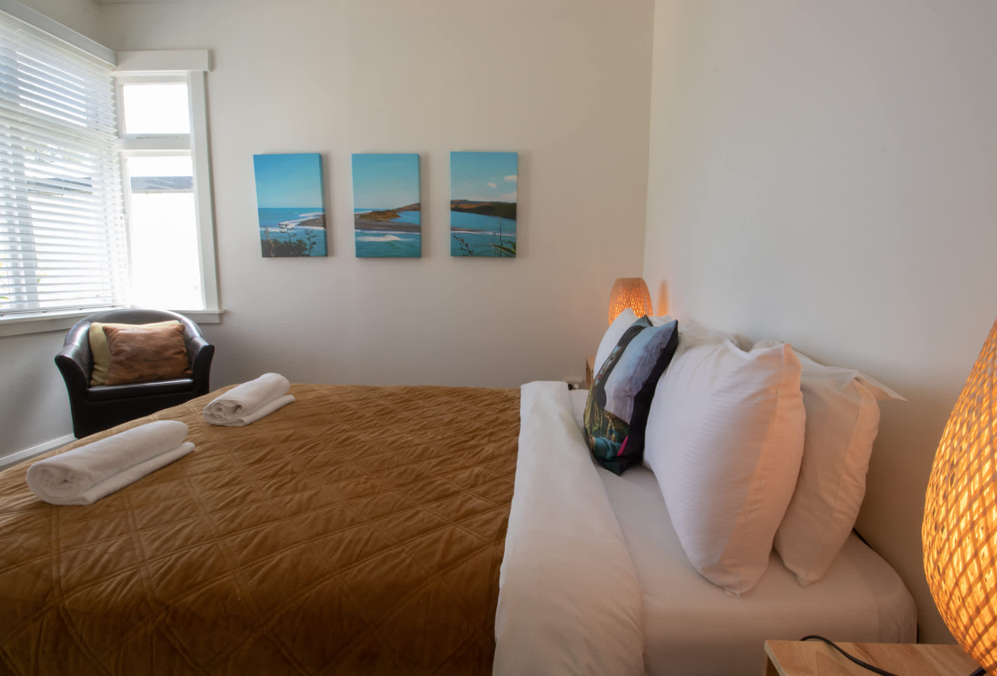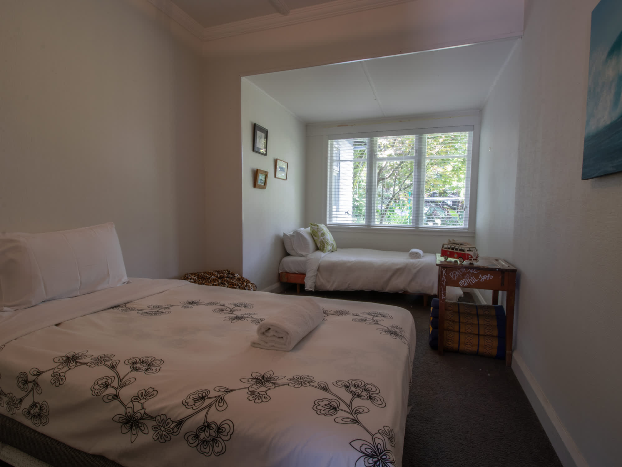 - Third bedroom with a queen bed and a single bed.