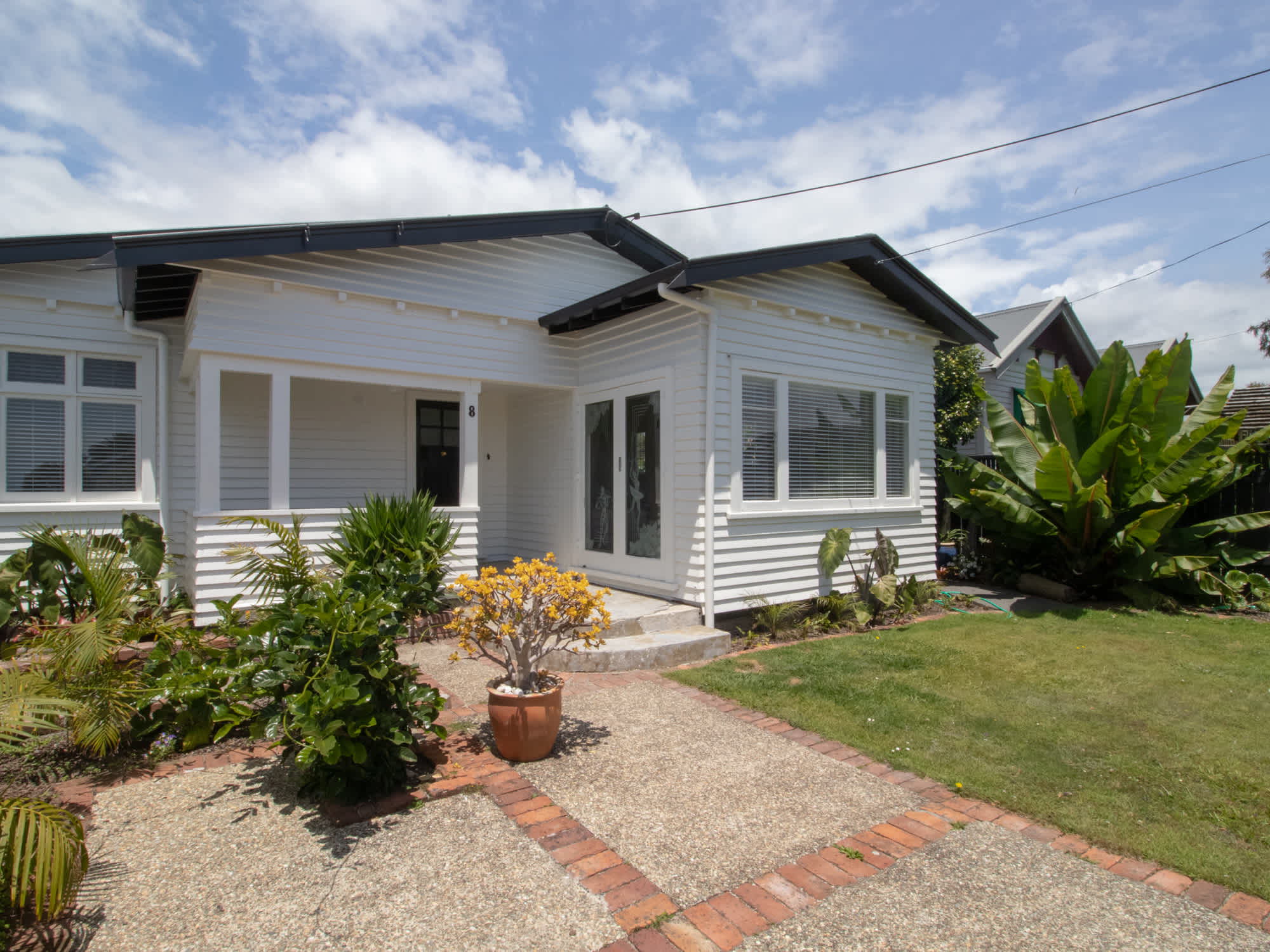 Centrally located in a quiet cul de sac, this charming 1930's bungalow is just a five-minute drive from the CBD of New Plymouth. A short walk will take you to the Bowl of Brookland's, Pukekura Park, Countdown Supermarket, and various takeaway restaurants. Surrounded by a tropical oasis of palms and native plantings, this property offers a unique and inviting atmosphere for your holiday.