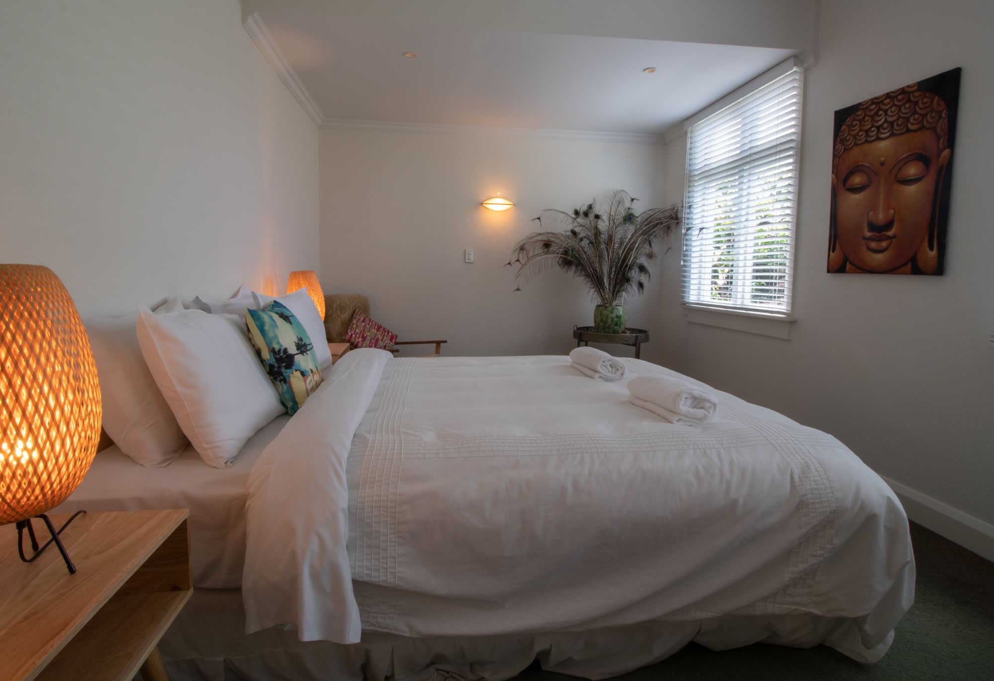 - Master bedroom with a queen bed facing north for all-day sun.