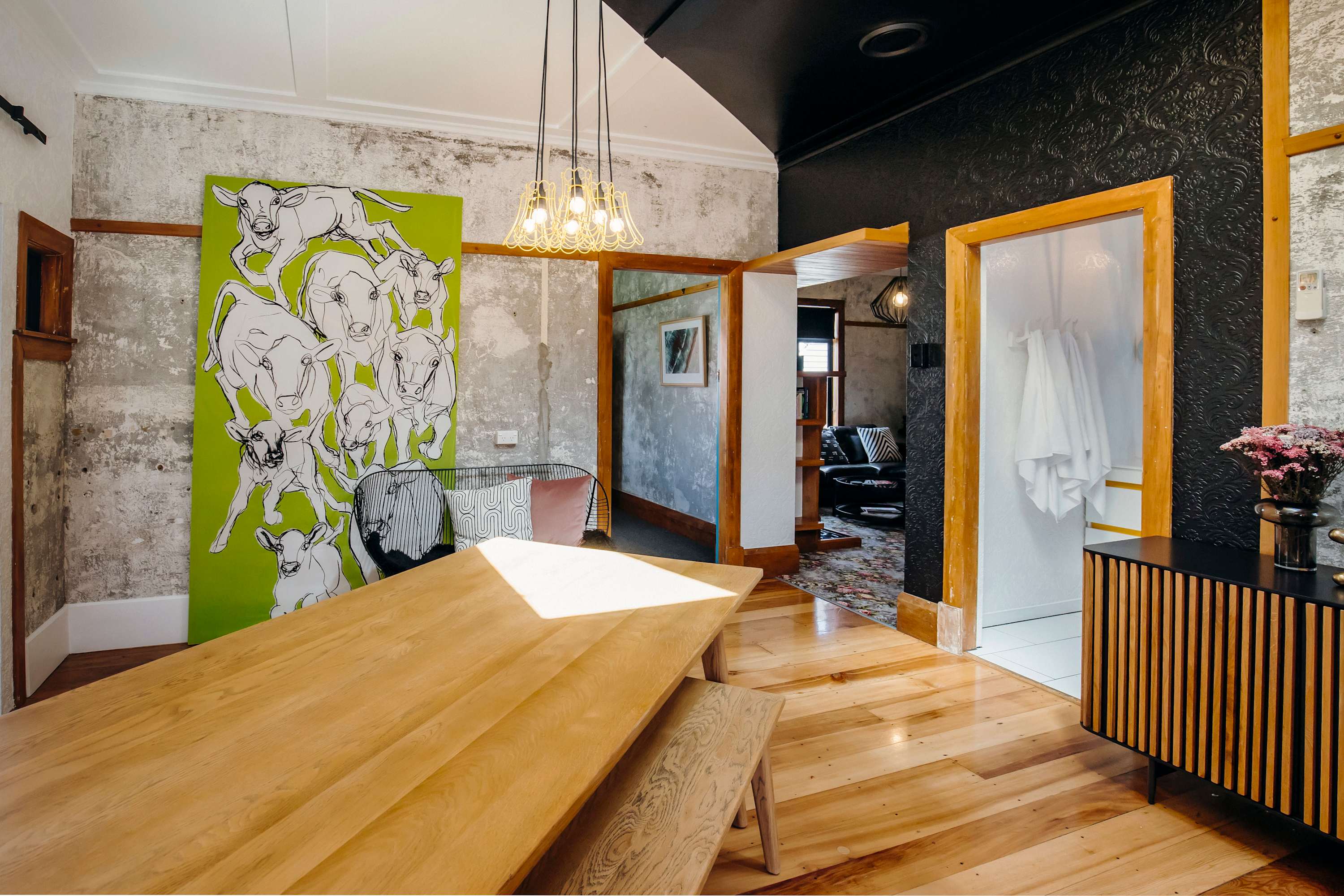 This stunning bungalow is bursting with an eclectic character filled charm. Step inside and be greeted by a dramatic living space of warm timbers and trendy design features. It is a place to totally relax in while enjoying a glass of port by the fire.