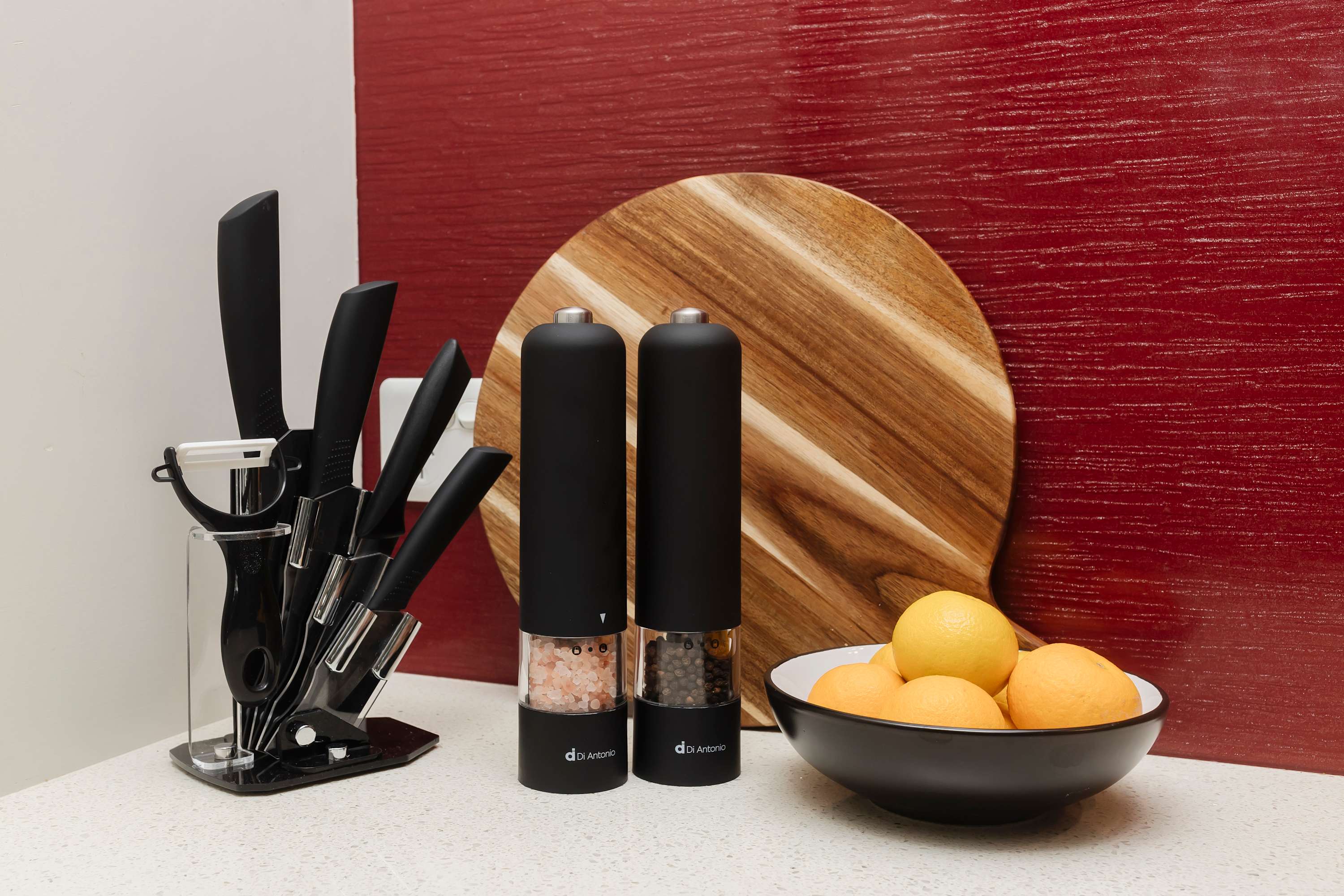 - Well-equipped kitchen with cooking oil, salt, pepper, coffee, tea, and milk