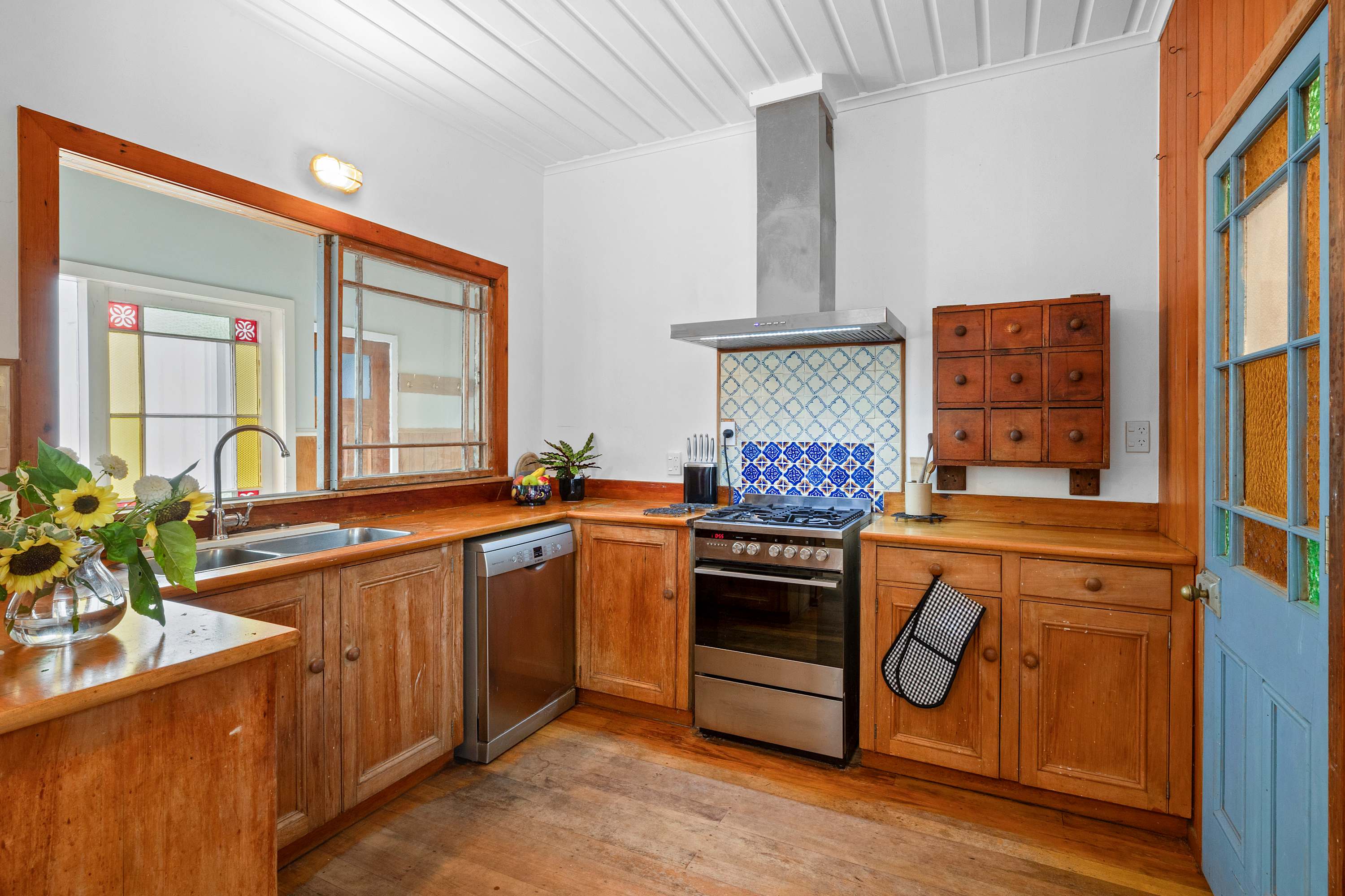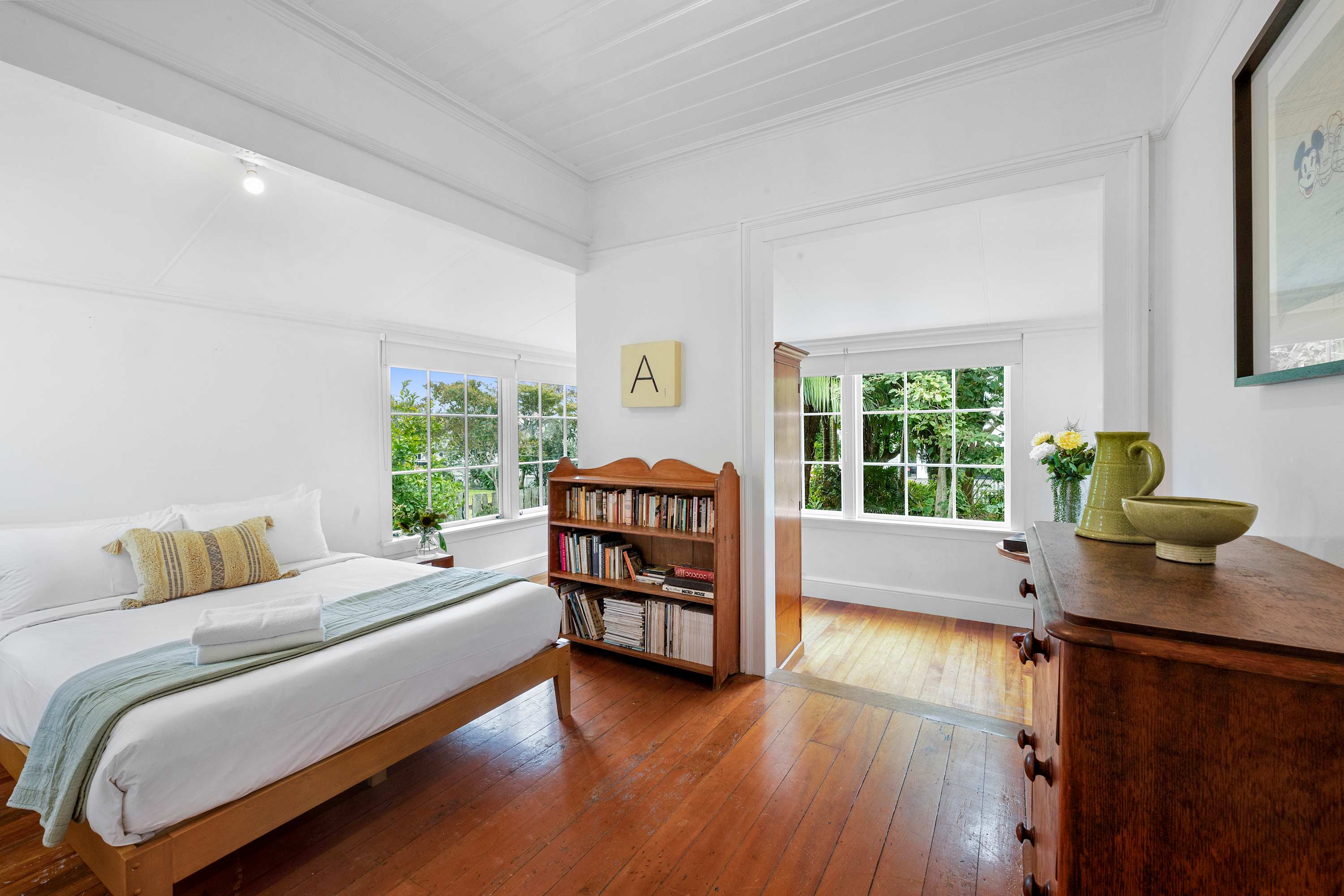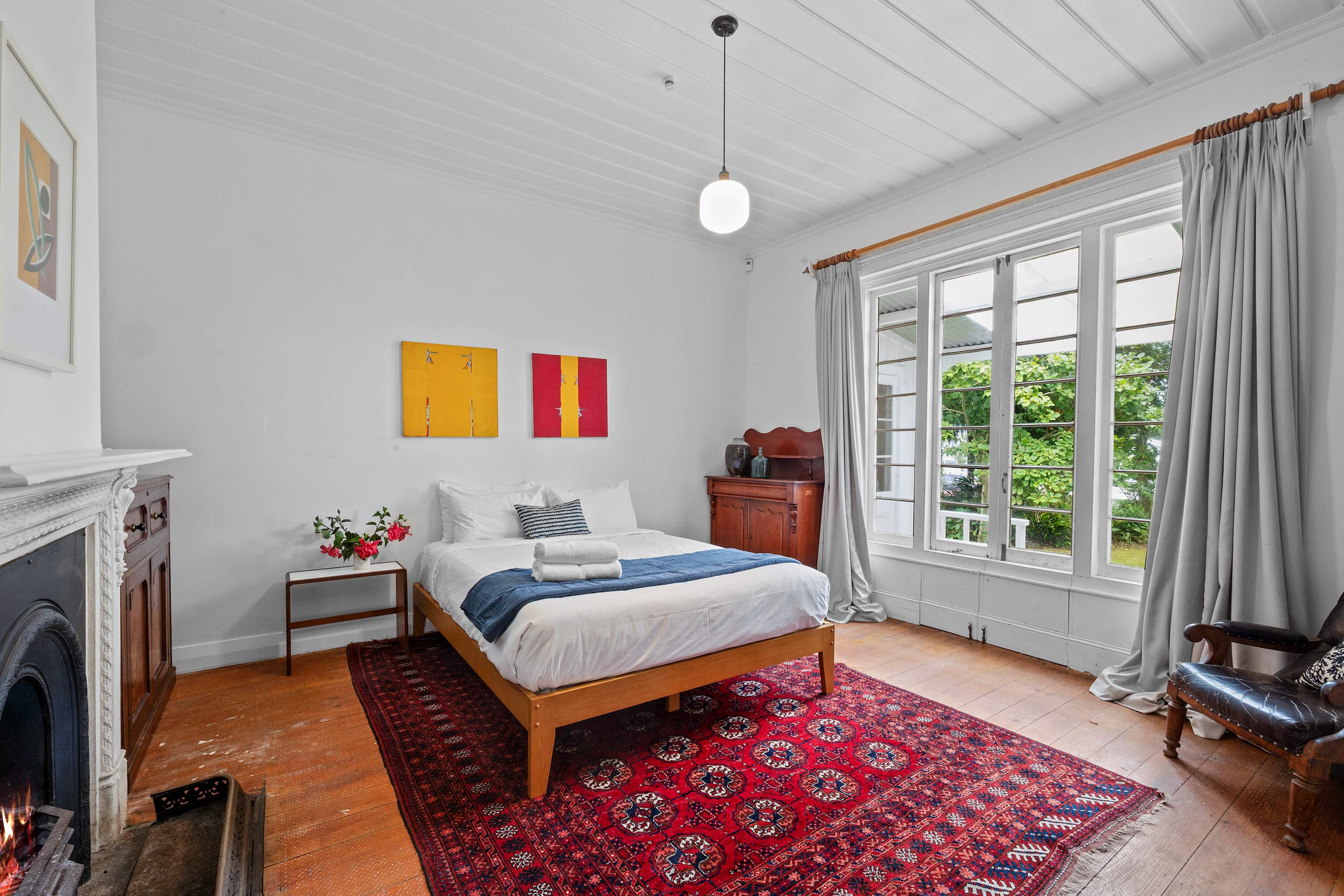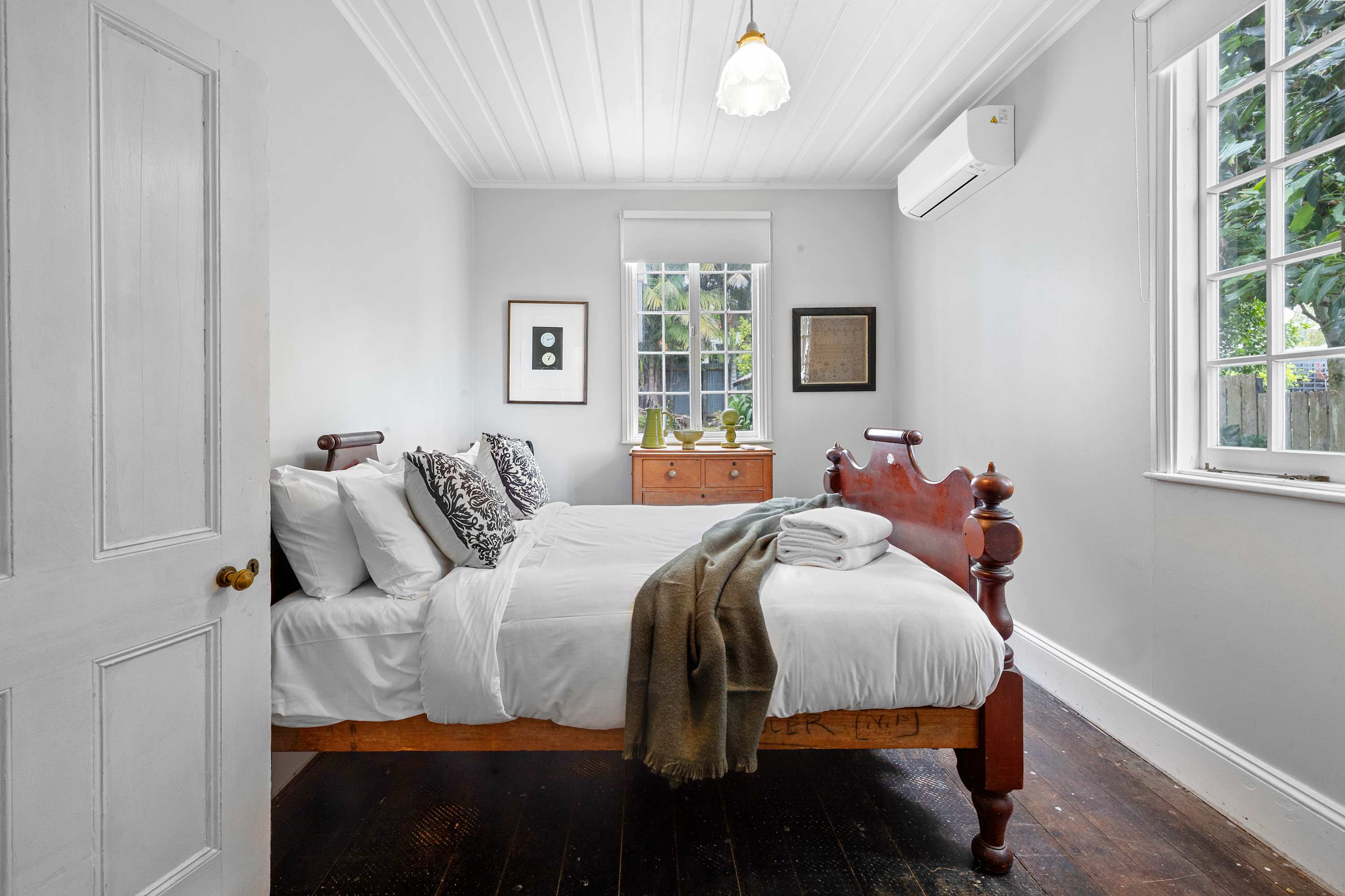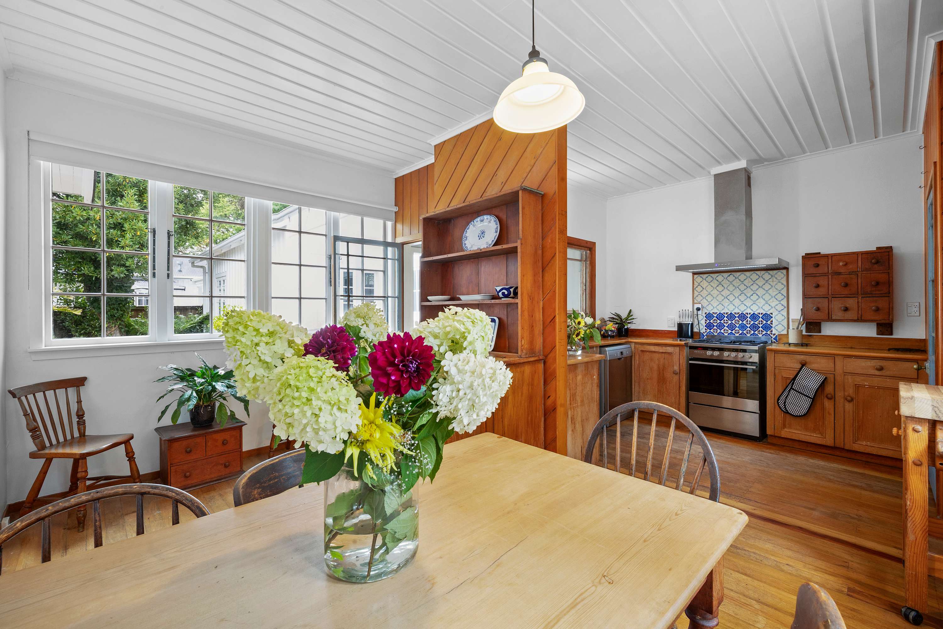 Known as one of the historic Hen and Chickens cottages, this property dates back to 1864 and is now protected as an important example of early New Zealand architecture. For its era, the interior feels unexpectedly spacious, light, and airy, complemented by special features such as original French and barn doors, ornate fireplaces, and the natural warmth of Kauri and Rimu throughout. It offers a rare blend of authenticity while still offering modern amenities.