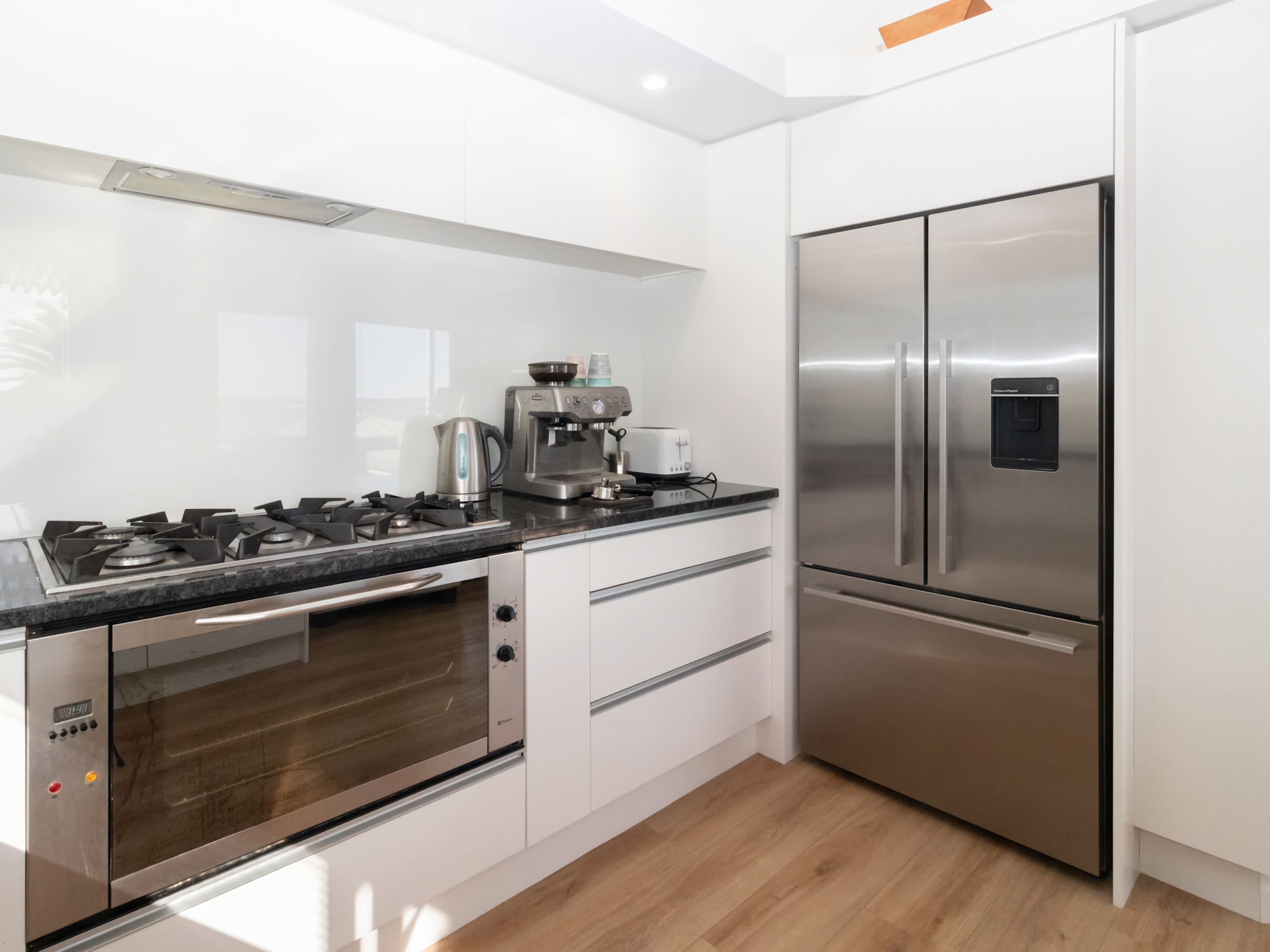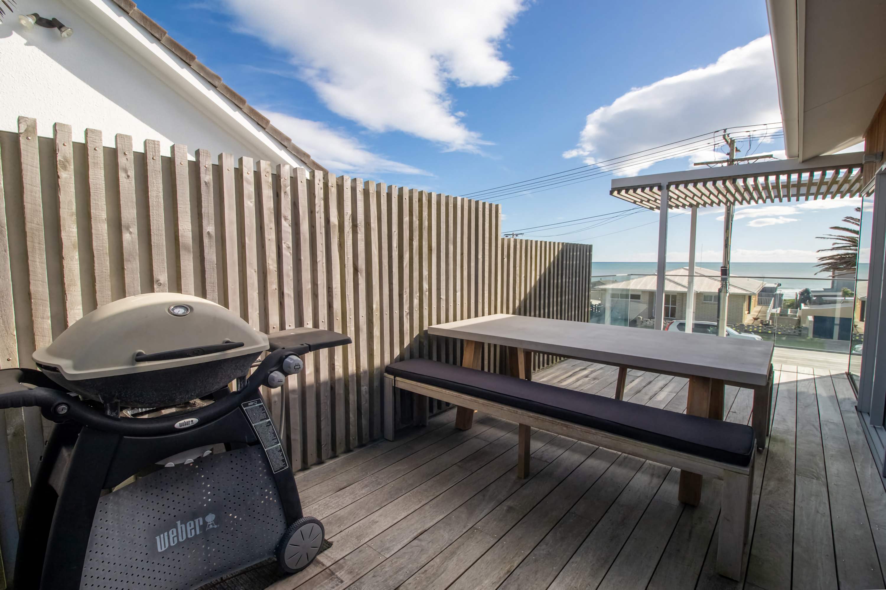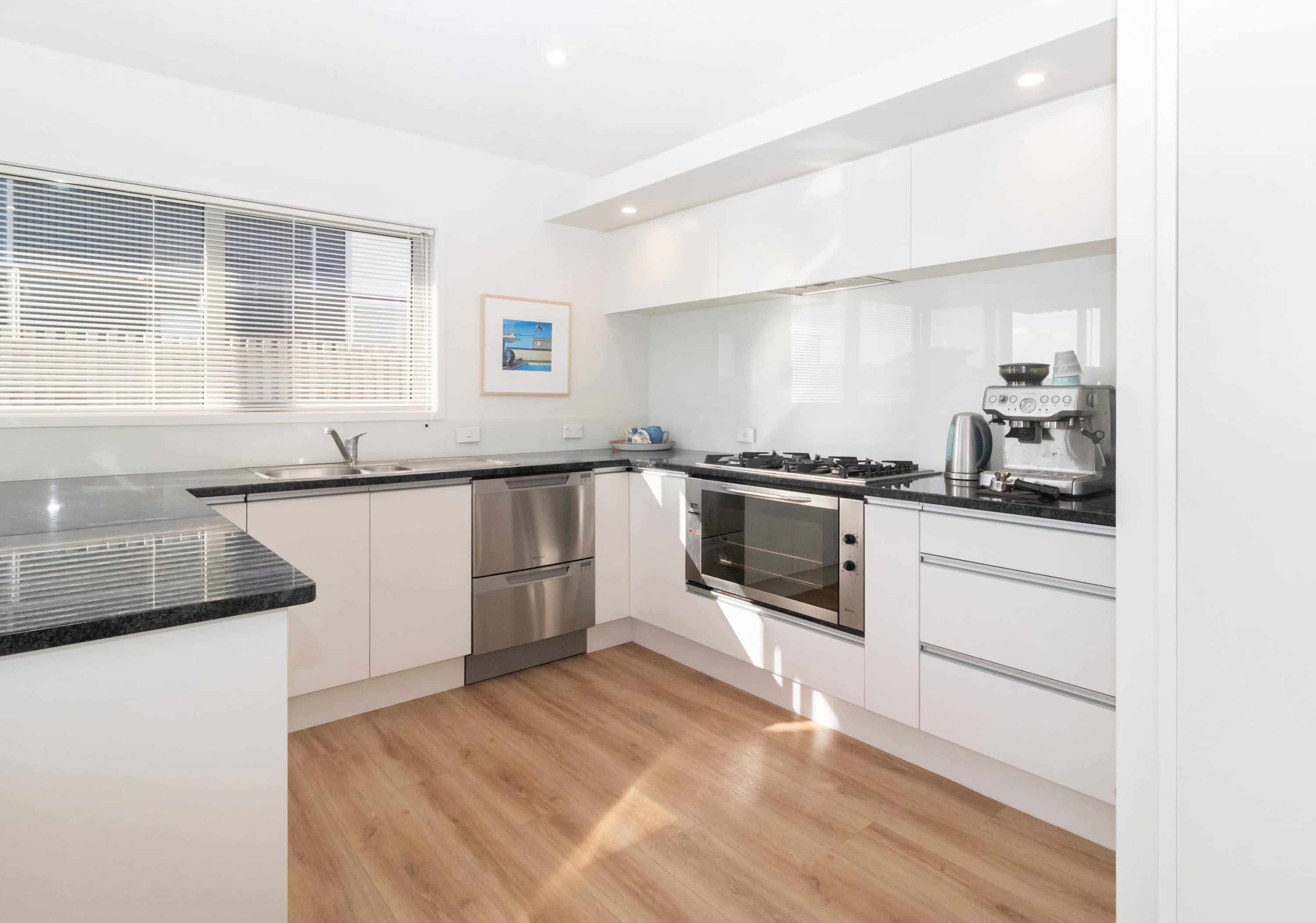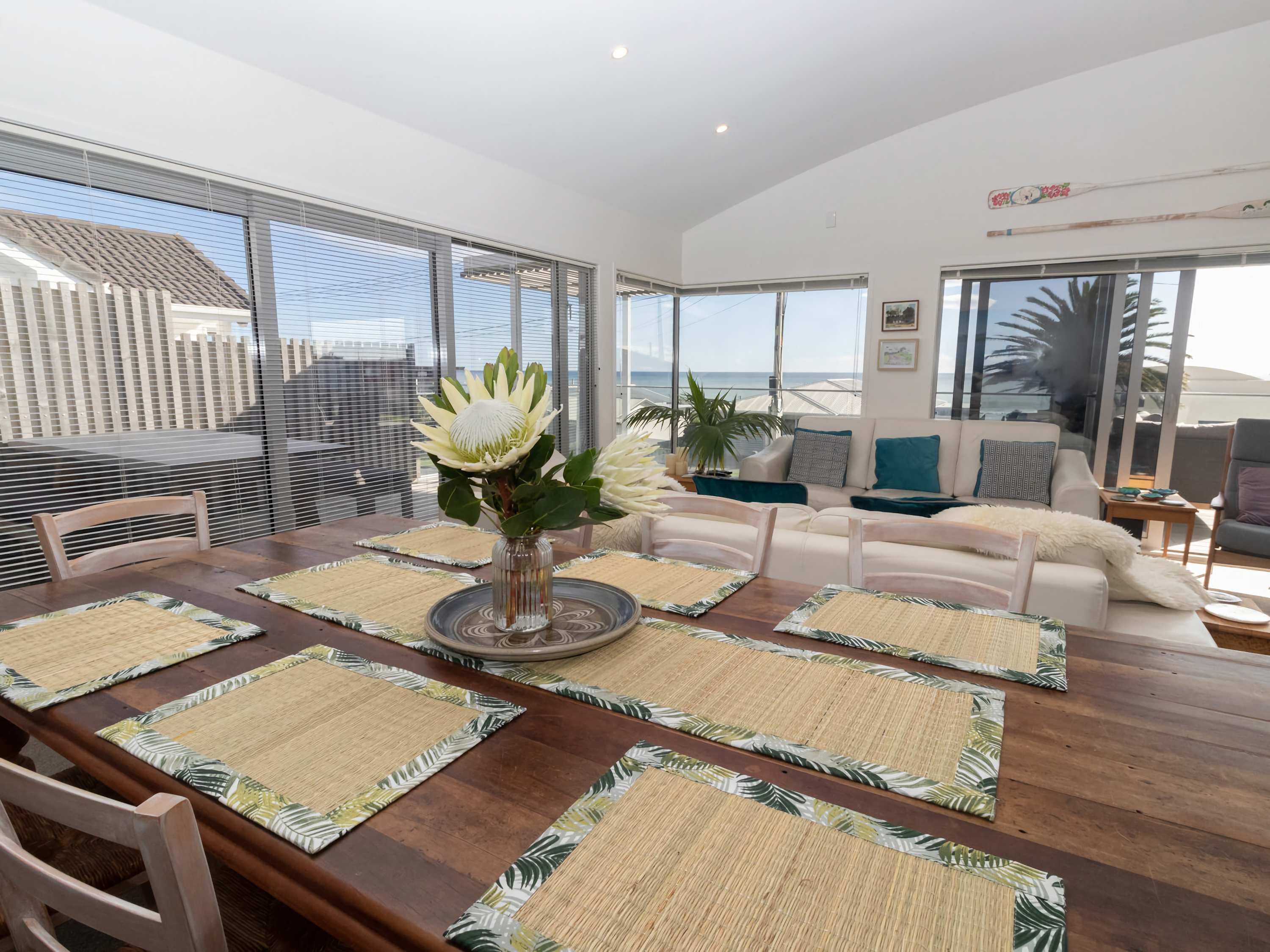 Elevated to capture all-day sun and sparkling blue water views, The Ocean Outlook combines quality with total comfort. The soft beachy vibe creates a relaxing atmosphere. The open-plan living area flows out to a sun-drenched deck, ideal for unwinding with a glass of wine while watching local surfers. The stylish, well-equipped kitchen features a coffee machine for your morning latte, or you can stroll down to the beach for a coffee at one of the pop-up spots along the walkway.