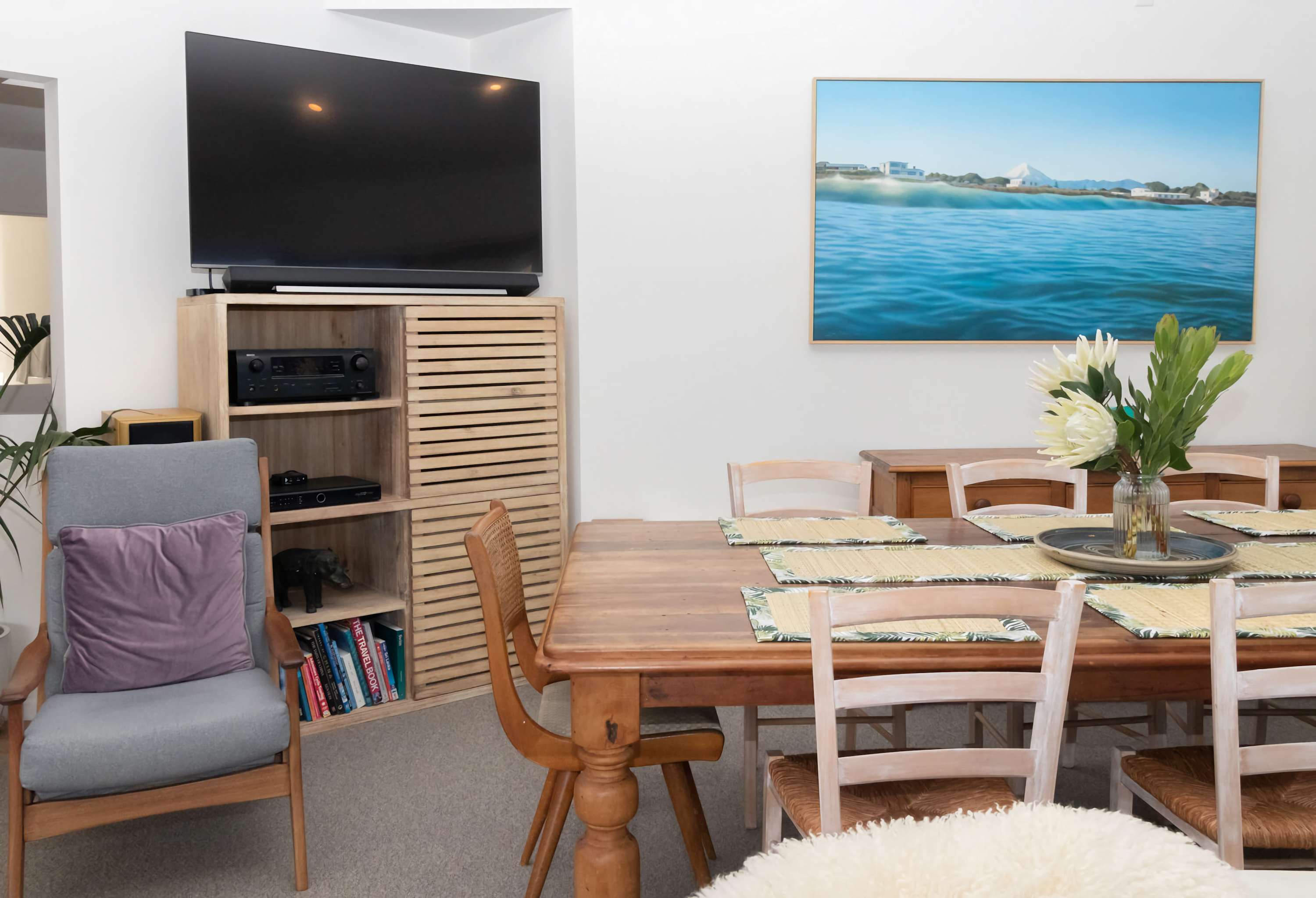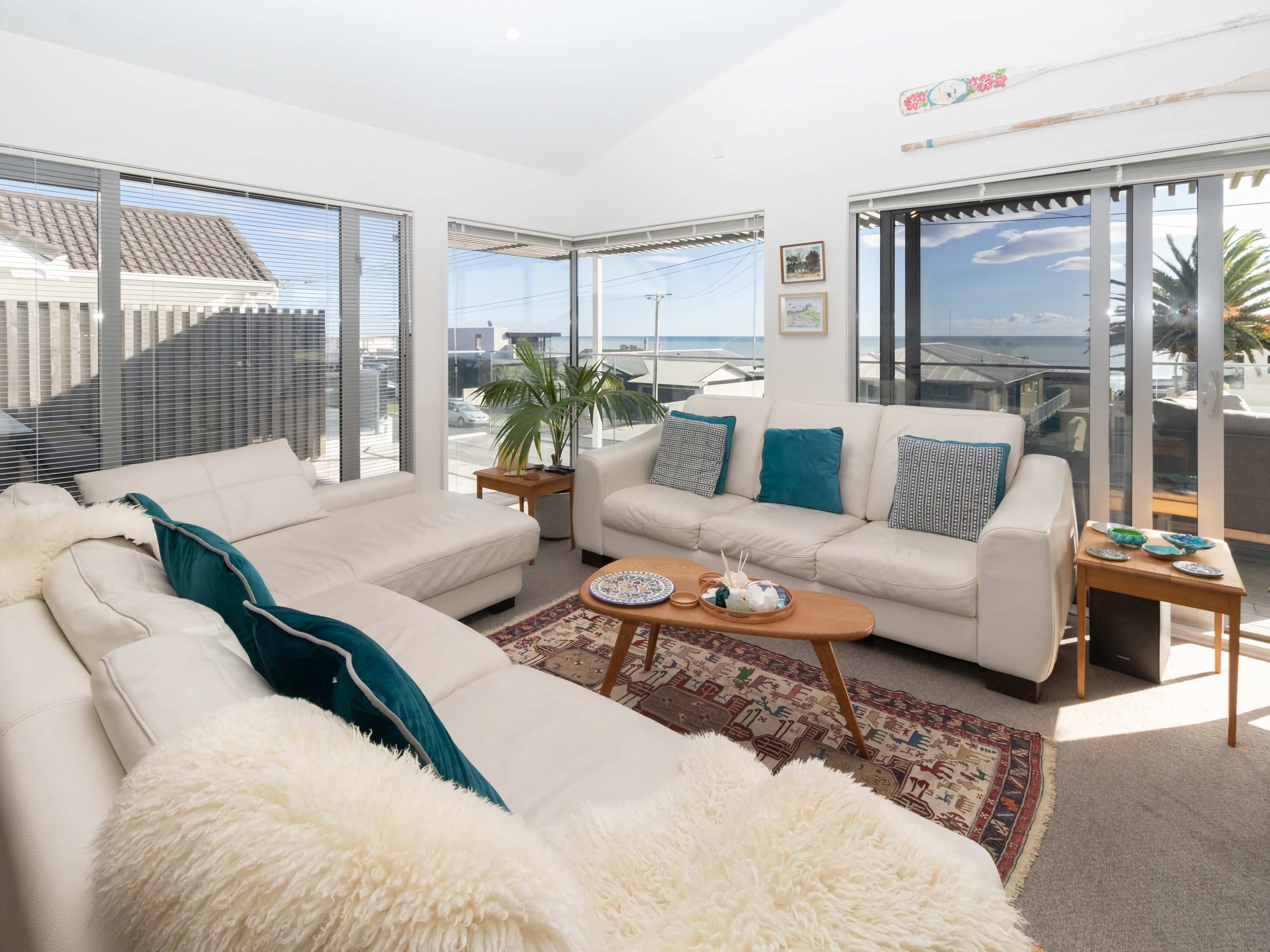 - Open-plan living area with a beachy vibe