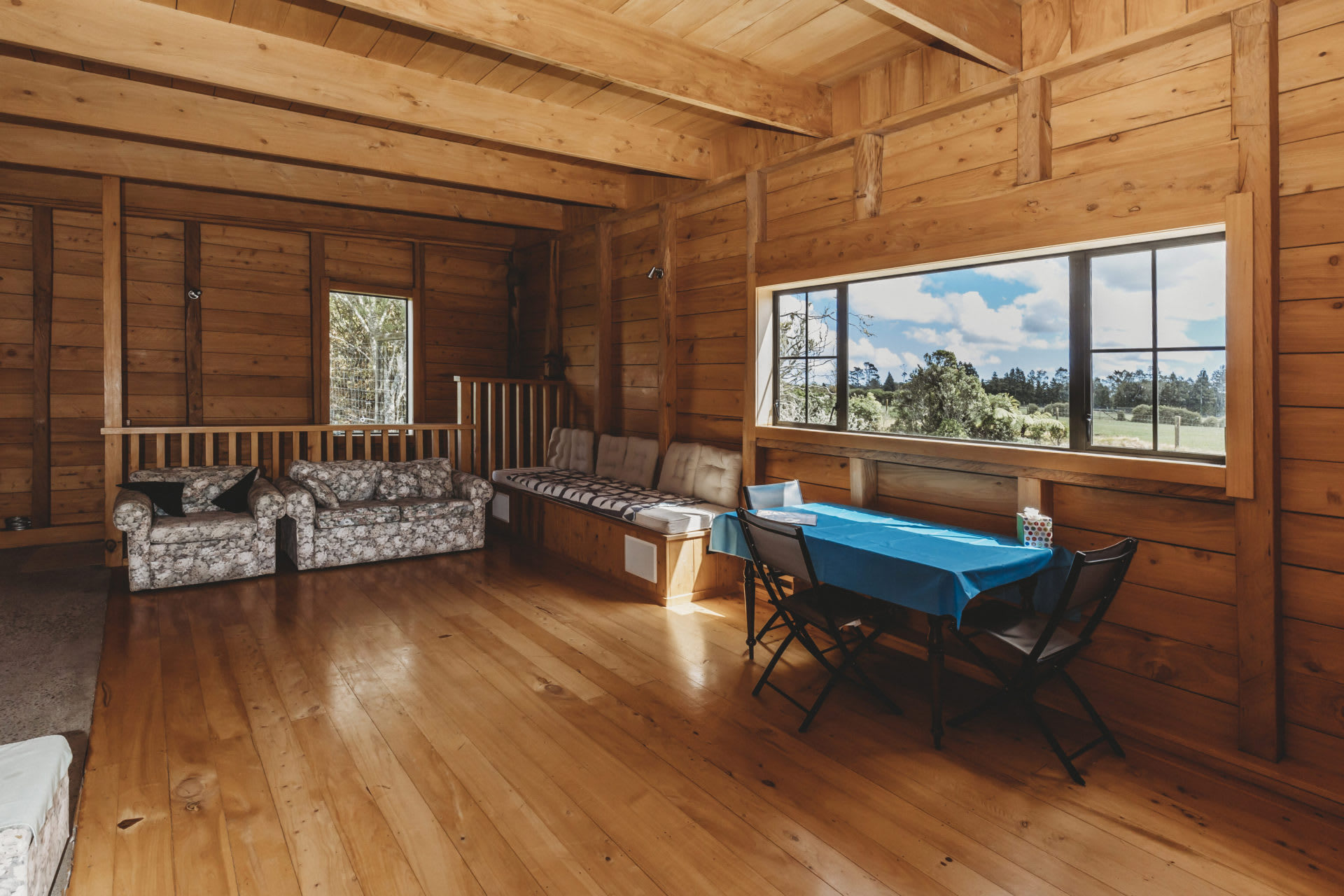 Experience a truly unique property powered solely by solar energy, ensuring you are fully off the grid. The main cabin features basic cooking facilities, including a gas cooktop and a small gas-operated fridge for your essentials. A BBQ is also provided for outdoor cooking. The spacious combined dining and living area opens to the outdoors through large barn doors, maximizing the rural environment. Downstairs accommodates four guests with a comfortable queen bed and two single beds.
