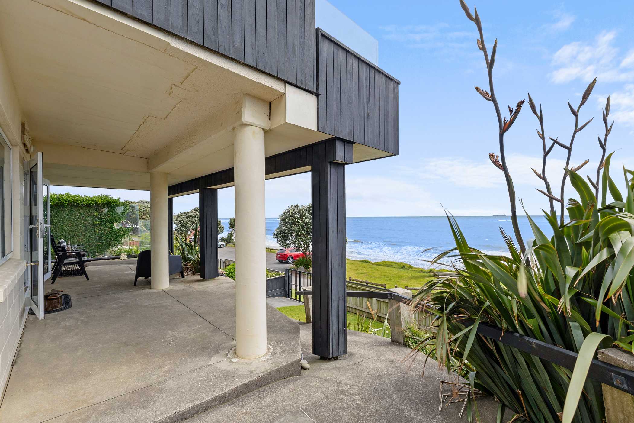 Wow on Wanaka is a stunning ground-level apartment located right on the Bell Block beachfront in New Plymouth. This prime holiday location connects you to the Scenic Coastal Walkway, perfect for cycling and walking past some of the best swimming beaches in the area. Enjoy a scenic thirty-minute walk to the CBD, or take a short stroll to Parklands shopping for your holiday needs and a great coffee fix. Families will appreciate the close proximity to Hickford Park, featuring a velodrome, BMX park, and sports ground. The Mega Valley Shopping Centre and Ngamotu Golf Course are just a short drive away.