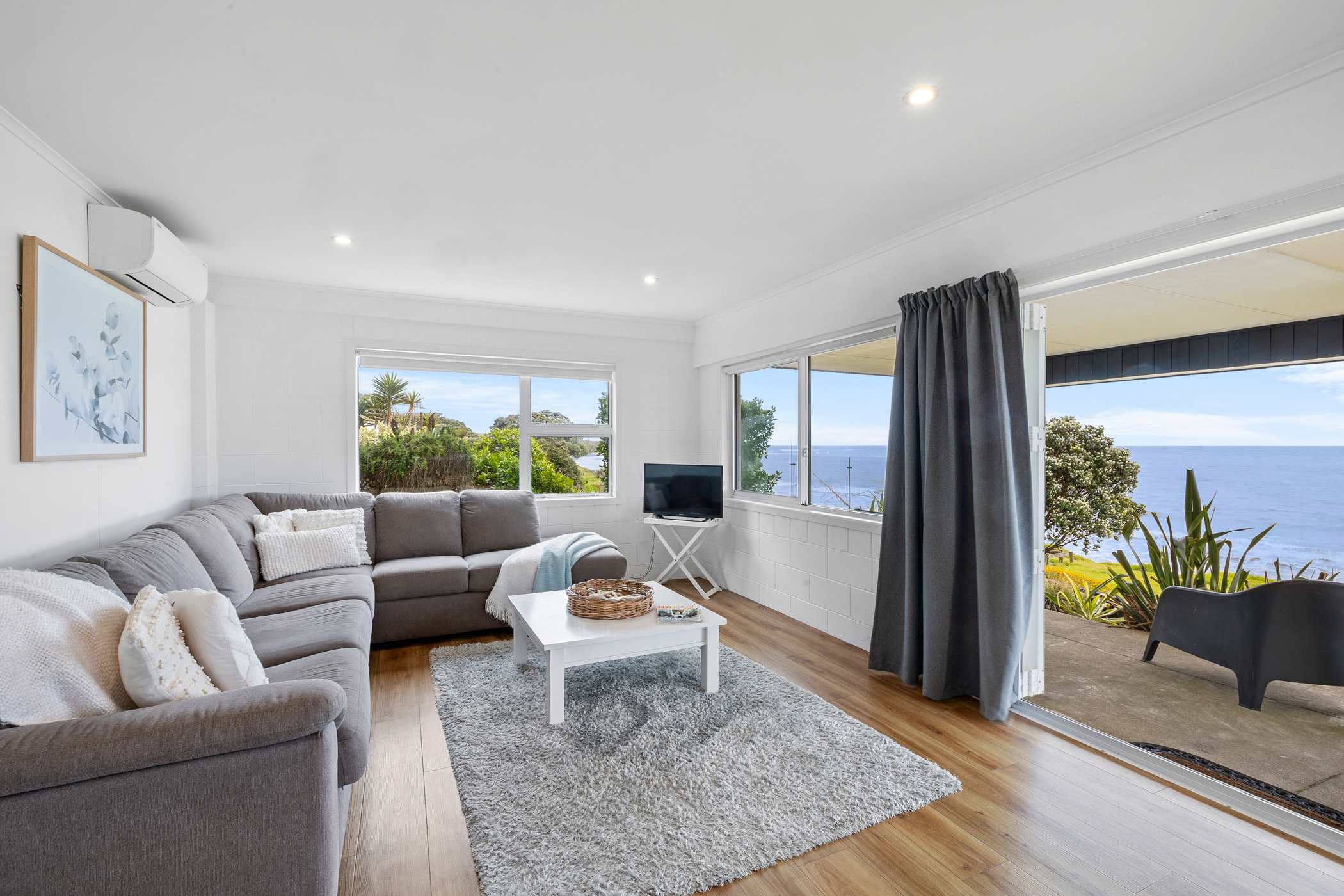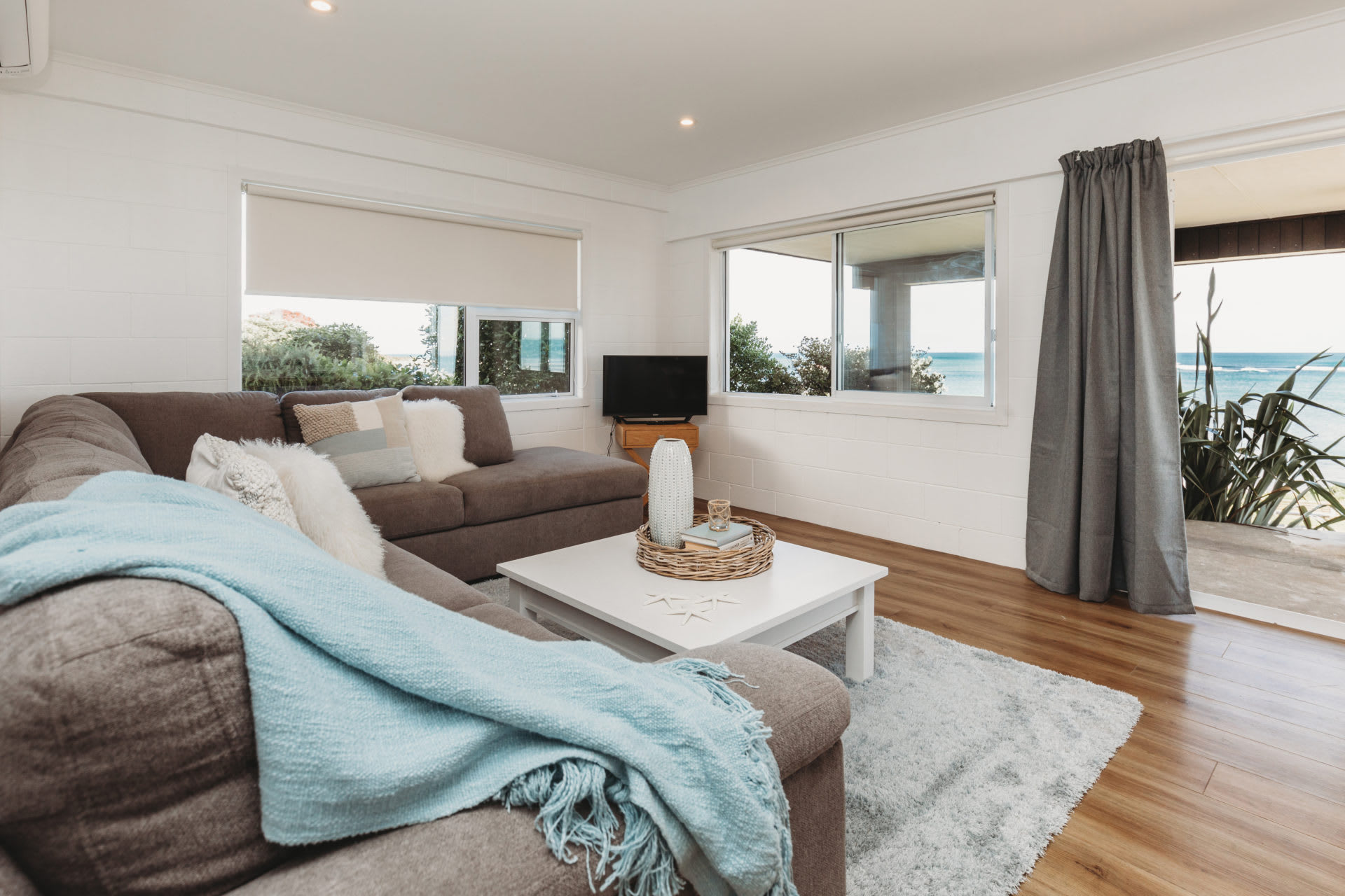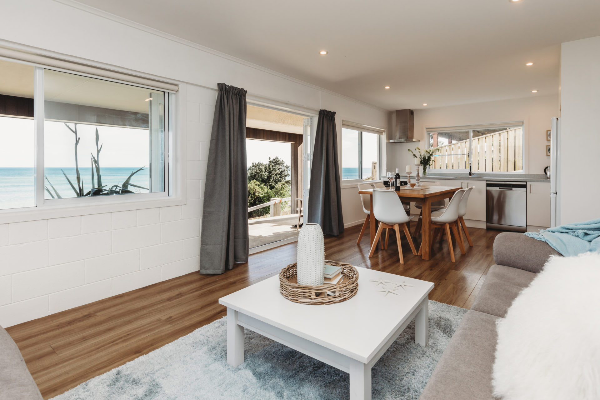 The apartment captures all-day sun and offers breathtaking blue water views. With a beachy decor, it creates a light and bright atmosphere that instantly relaxes you upon arrival. Open the doors and slide back the windows to breathe in the sea air while watching the waves roll in. Enjoy your morning coffee outside before wandering down the path directly to the beach for a stroll.